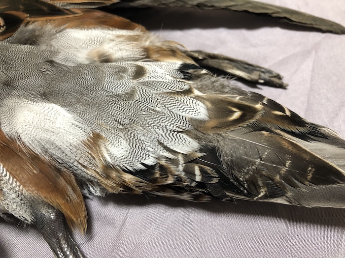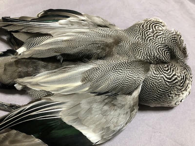 和名 ヒドリガモ。 レアって言えばレアですね。 鴨に限らず、毛ばりの世界では雌はあまり使われないので需要が少ない。 ヘンフェザントのように需要の高い雌鳥もいるにはいるが....。 いつも思う先人たちは釣れる毛鉤を考え、作り、使ったわけで、その土地柄など海に近いところでは海のものや港があるので輸入できる他国の美しい羽を使ったわけで、交通の便が悪く山の方では山のマテリアルを使ったわけです。 コックデレオンのように政治的な理由で使われなかった美しい羽もある。 私は商業柄いろいろな鳥を手にする。人気のないメス類で作った毛鉤もなかなか優秀である。 ヒドリガモに求められるオスの白黒のバー模様も、雌はコントラストが鈍い。これはこれで虫っぽいと思うのは私だけだろうか........。 もちろん、プライマリークイルやセカンダリークイルはダッククイルとして優れている。 Eurasian Wigeon female ¥10,000 Soldout PR Felcated duck Felcated duck ¥20,000-ご注文はこちらから honnmonoya@gmail.com | カテゴリー