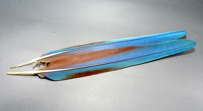 Green-winged Macaw (Inner-secondaries) 完璧なペアです。 貴重なフェザーです。 Wet flyやSalmon flyにお使いください。 Over all length 190mm Max outer barb 40mm Max inner barb 45mm Green-winged Macaw (Inner-secondaries) ¥4,000(税抜) ご注文はこちらから | カテゴリー