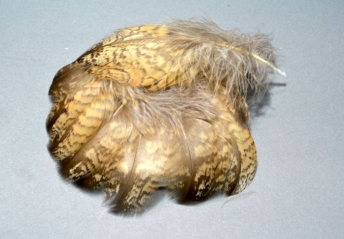Wing cover perfectなペアです。 Wet flyのウィングにお使いください。 柔らかい毛羽立った羽質は、水中でよく動き誘い効果は抜群です。 ファイバーを数本まとめてボディに巻いてもリアル感が出ます。 Wing cover ¥900 ご注文はこちらから Full length 140mm Body feather 使い方はお任せします。 虫っぽさをを演出してください。 L size ¥800 (約130mm) M size ¥700 (約100mm) S size ¥600 (約70mm) small marabou feather under featherといった方がいいかもしれないですね。 小型のイーグルフライやマラブーフライにお使いください。 small marabou feather ¥600 Full length 60〜85mm PR イーグルアウル