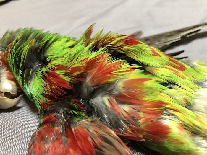 Wet flyやSalmon flyに是非使って欲しいマテリアルです。 今では入手困難になった数々のSalmonn materialの代用として優れています。 ハックル・スロート・ウィング・テール・チークなどなどタイヤーの想像力で魅力的なフライが巻けます。 実経験ですが、釣れる。水中で鈍く光るのがインコやマコウなどの特徴か.......? 夏ザクラやオオヤマメに田酔える相棒になりはずです。 想像力豊かな美しい毛鉤で記憶に残る魚を.......。 Rossela ¥13,000 ご注文はこちら honnmonoya@gmail.com Indian Rose-necked Parakeet