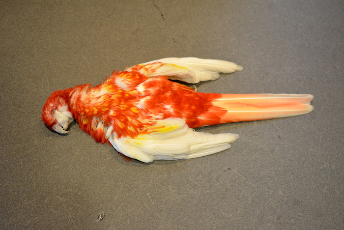 インコの赤は、水中で変わりません。鮮やかな赤のままです。