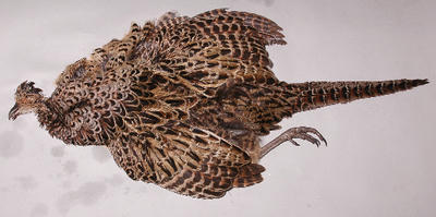 ジャパニーズフェザントの♀です。コウライキジより、模様がはっきりしています。