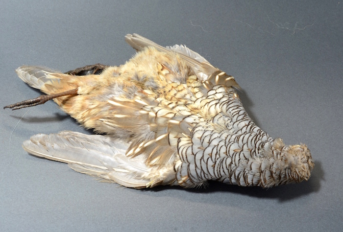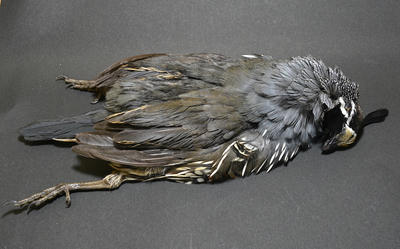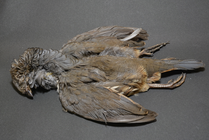 ネック廻りのブラックティップの青っぽいグレー、全身はやや明るいダンカラー。