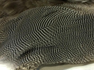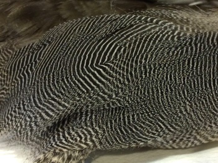 スキンを持っていると通常市販されない極小のシマシマ模様のハックルを使ったスモールサイズの毛鉤が巻けます。